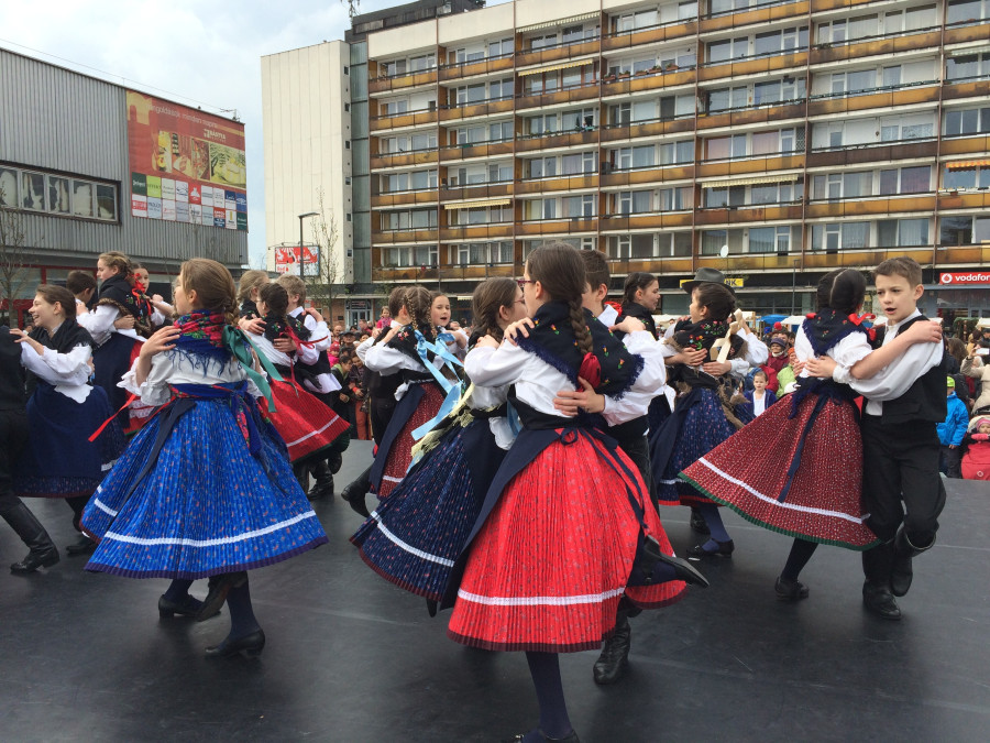 Délután a néptáncé volt a főszerep az első veszprémi hungarikum ünnepen. Kovács Norbert Cimbi és testvére, Kovács Krisztián Kiki vezényletével több, mint négyszáz táncos lépett színpadra. Bemutatkozott Veszprém megye számtalan néptáncegyüttese, gyermekek és felnőttek egyaránt. A táncosokat élőzene kísérte, egész nap a Zagyva Banda húzta a talpalávalót. Még a délutáni záporok sem szegték kedvét az egybegyűlt tömegnek. Ereszek alá húzódva várták ki, hogy elálljon az eső. A produkciókat több mint kétezer néző követte figyelemmel. A rendezvény szervezői játékra is invitálták a résztvevőket. Egy összeállított hungarikum-totó húsz kérdésére kellett helyesen felelni. A hungarikum-totót hibátlanul kitöltők között egy ajándékkosarat sorsolnak ki.