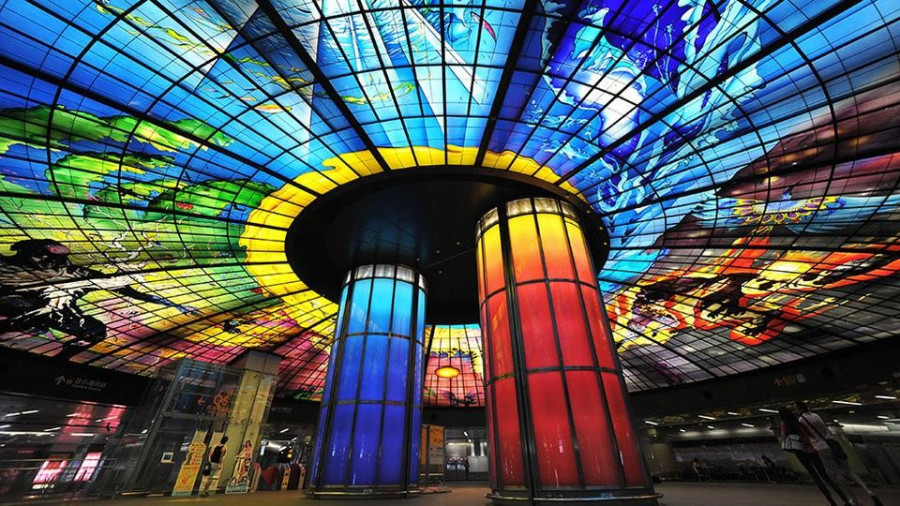 A természetes fényeket leglátványosabban a Formosa Boulevard megálló hasznosítja a tajvani Kaohsziungban. A megálló központi látványelemét, az alábbi képen is látható ólomüveg Fénykupolát Narcissus Quagliata tervezte, és ez a világ legnagyobb ilyen installációja.