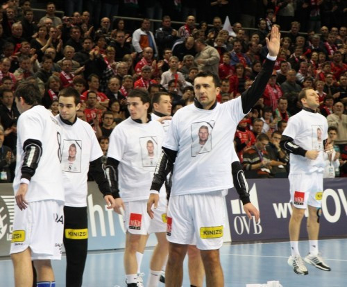 Háromnegyed három előtt pár perccel pályára léptek melegíteni a csapatok. A veszprémi játékosok egytől egyig nyolcas számú, Cozma fényképpel ellátott mezben jelentek meg, a brutálisan meggyilkolt beállós emlékének adózva.