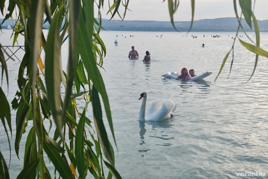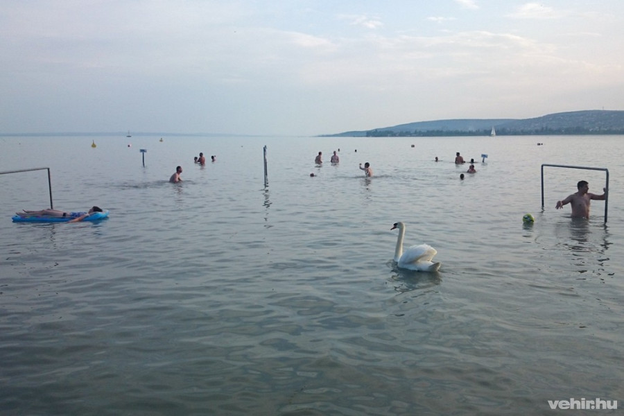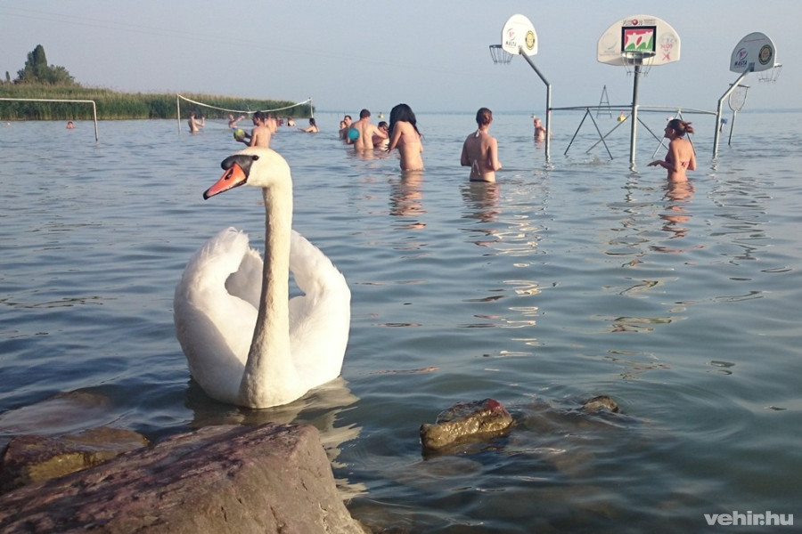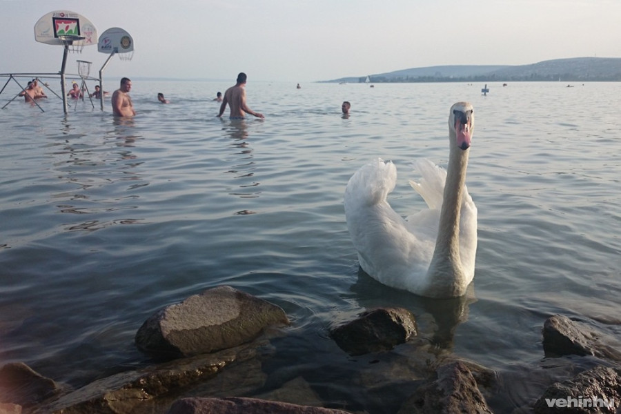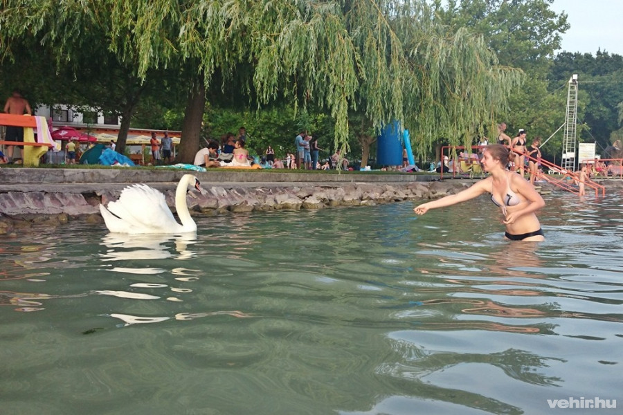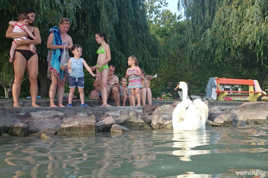 A vízben mindenki vidáman lubickolt, a hattyú pedig senkitől sem tartva fogyasztotta el a vendégek által a vízbe dobált kenyeret.