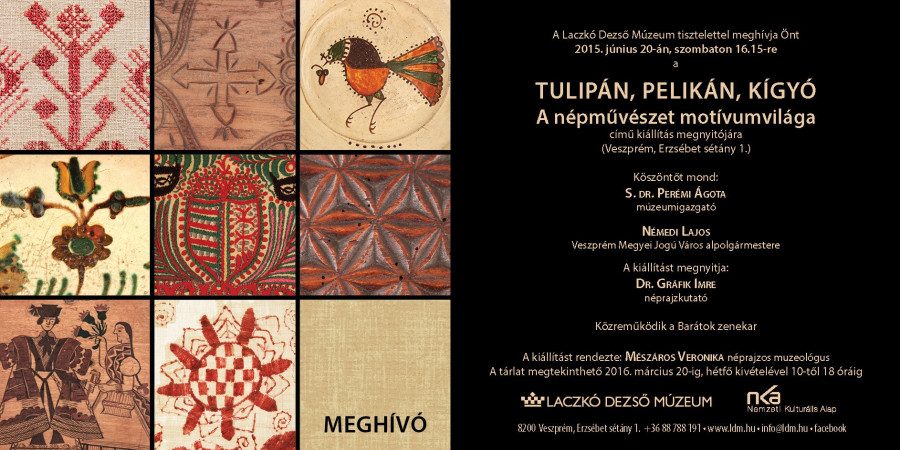 Minden népnek, minden kultúrának megvan a maga jellegzetes képi világa: azok a jelek és jelképek, amelyek tárgyaikon, épületeiken megjelenve kifejezik az adott közösségre jellemző ízlést és gondolkodást. A Laczkó Dezső Múzeum kiállítása a Bakony és a Balaton-felvidék hagyományos paraszti tárgyi kultúrájába, a bútorokon, lakástextileken, viseleten, pásztorművészeti tárgyakon megjelenő szimbólumok világába kalauzolja a látogatót.