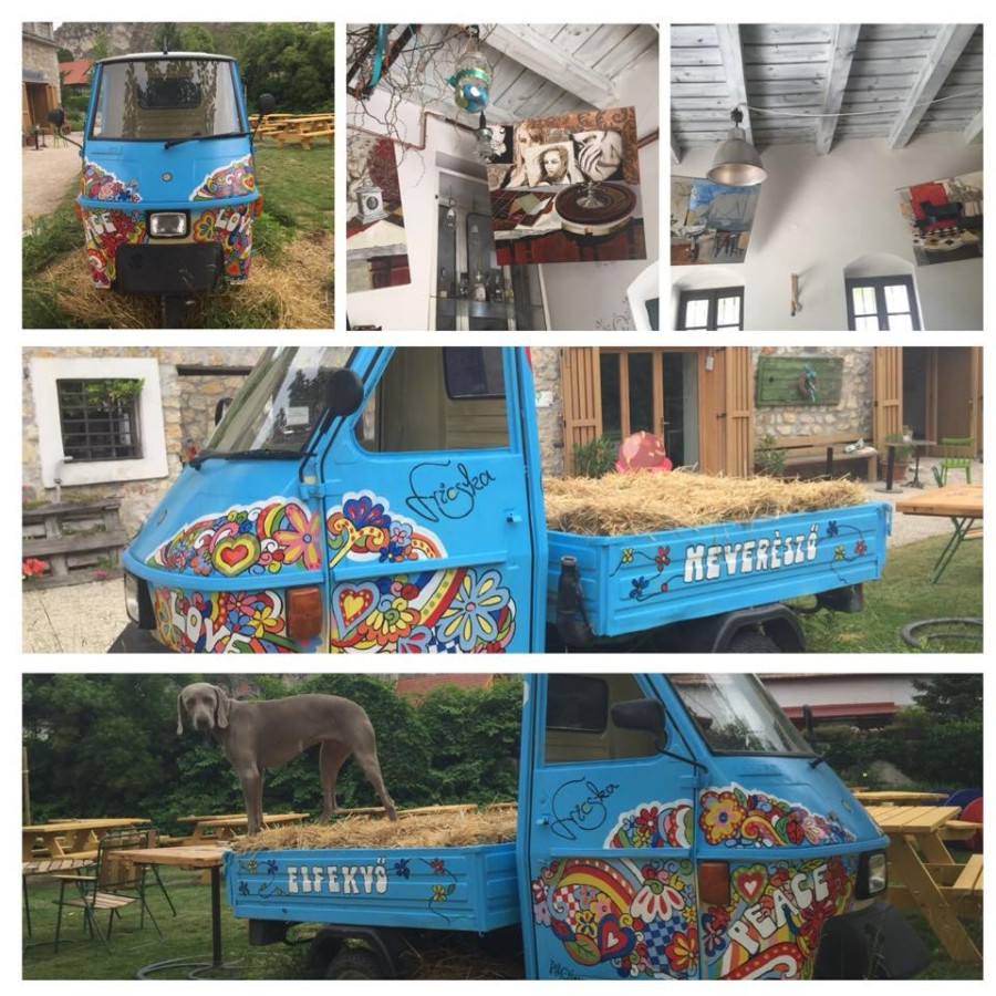 Egyébként nem csak az autón, hanem a bisztró belső terein is az ő festményei lógnak a falon