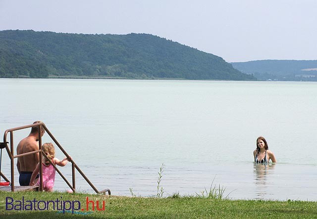 Tihany közelsége több módon is megmutatkozik: a félsziget uralja a panorámát, a víz pedig kellemesen mély.