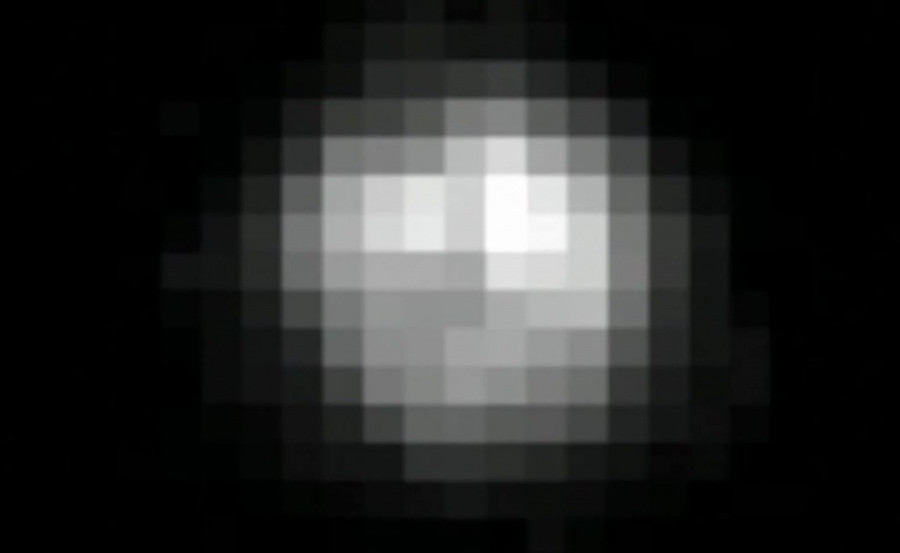 A Pluto - a fenti képen is látható - szív alakú foltjának létezéséről egészen a hét elejéig nem tudtunk. Már csak azért sem, mert a New Horizons érkezéséig a legjobb képünk a törpebolygóról egy - enyhén szólva - nem túl részletgazdag felvétel volt, amit a Hubble űrteleszkóp készített. Mutatom: