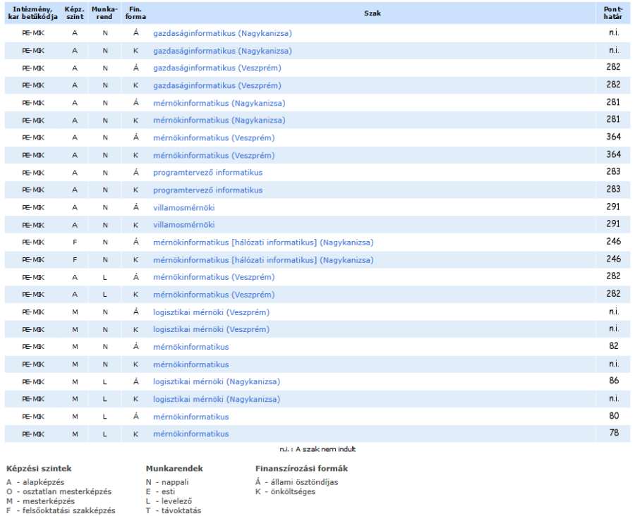 A Pannon Egyetem pontszámait összeszedtük egy helyre az analóg megoldásokat preferálók kedvéért, a felvi.hu-n kereshető formában is megtalható minden fontos információ.