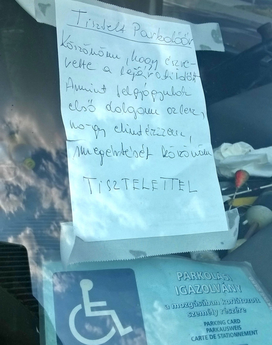 A képet tegnap fényképeztem a Megyei Kórház előtti parkolónál, amin egyébként ez áll: