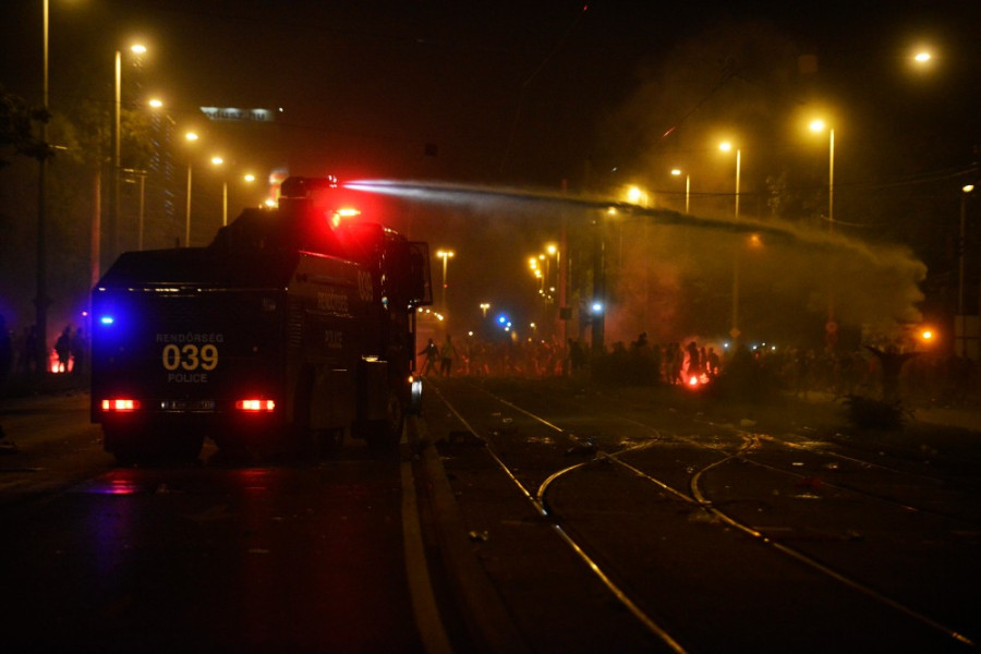 Az MTI helyszínen tartózkodó tudósítója elmondta: a rendőrök először sorfalat álltak és elkezdték a Kőbányai út irányába kiszorítani az ultrákat. A Groupama Aréna mellett, a Könyves Kálmán körúton a randalírozók közlekedési táblákat, szemeteseket, betondarabokat dobálták a rendőröket. A rendőrök ismét bevetettek ellenük vízágyút, könnygázt is. A könnygáz egy részét a szél a stadionból kijövő békés szurkolók felé fújta.