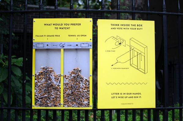 Pláne Londonban. A Hubbub nevű szervezet rájött, hogy mivel szorítsa vissza az eldobált csikkek és rágók számát az angol fővárosban. A Nearstreet nevű projektjük során táblákat helyeztek ki, de nem akármilyeneket. Ugyanis ezeken olyanok olvashatók, hogy
