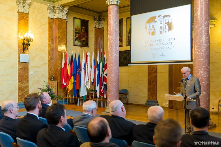 Porga Gyula polgármester, az esemény ötletgazdája köszöntőjében elmondta, hogy az elmúlt negyed évszázad különös jelentőséggel bír Veszprém életében, hiszen hivatalosan az önkormányzatok megalakulásához kötjük a rendszerváltás befejező szakaszát. Egy teljesen új éra vette kezdetét, amely sok nehézséget, de igen sok örömteli pillanatot is tartogatott: többek között továbbfejlődött, gazdagodott a város. Ez természetesen nem lett volna lehetséges a politikai vezetők, gazdasági szakemberek aktív tevékenysége nélkül, akik előtt tiszteleg ez a konferencia – hangoztatta.