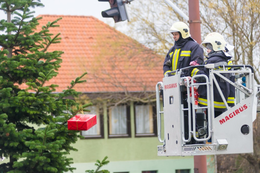 Új hagyományt teremtett a Veszprém Megyei Katasztrófavédelmi Igazgatóság: általános iskolás osztályokat hívtak meg a tűzoltóság karácsonyfájának feldíszítésére.