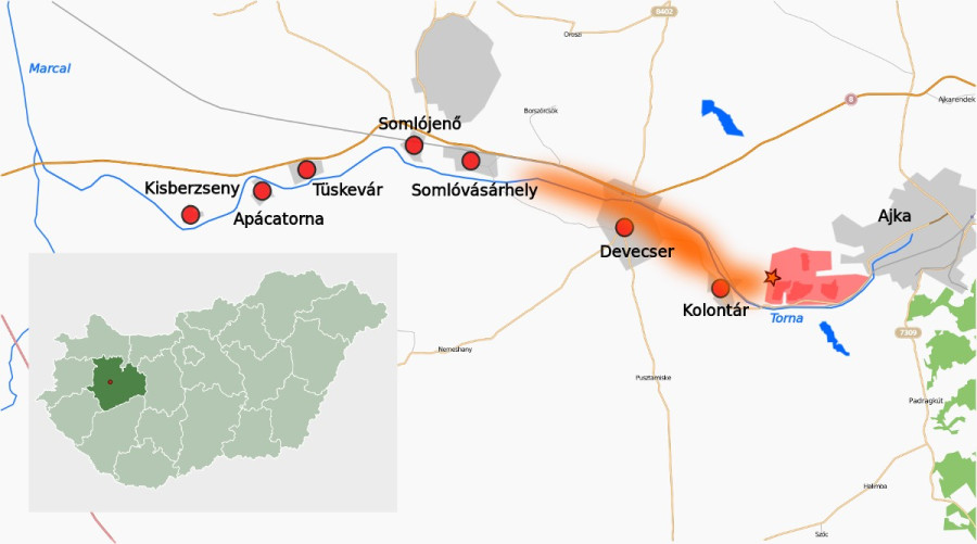 - Iszapömlés: Somlóvásárhelyt is elérte a vörösiszap
