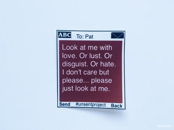 Az unsent project (elküldetlen projekt) mindenkinek megadja a lehetőséget, hogy névtelenül üzenjen exének. A legjobbakat a lány weboldalán és instagram fiókján találjuk, de rengeteget ki is nyomtat belőlük.