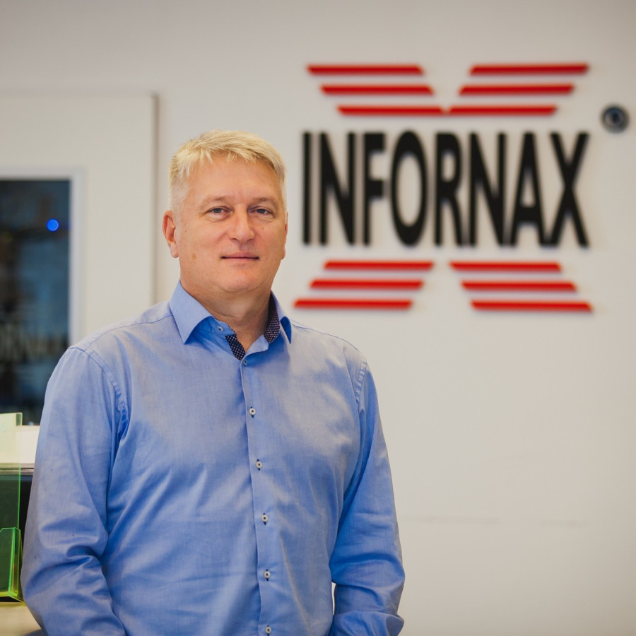 Az Infornax egyszerű informatikai szervizvállalkozásként indult 1993-ban, és a piac igényeire reagálva fokozatosan bővítettük tevékenységi körünket. Az informatikai eszközök szervizelése, árusítása, valamint a szoftverfejlesztés után internet szolgáltatással folytattuk, ezután elkezdtünk informatikai hálózatok építésével, mérésével, tervezésével, üzemeltetésével foglalkozni. Cégünk filozófiája, hogy komplex megoldásokat kínálunk az ügyfelek számára az informatikai jellegű igények esetében. A gyártásautomatizálással foglalkozó Transmoduls Kft.-t Maár Márton András ügyvezetőtársammal vezetjük. A cég egyedi gépek tervezésével és gyártásával foglalkozik. Külön ki szeretném emelni az alaptevékenységünkhöz szorosan kapcsolódó „Kutatás + Fejlesztés” részlegünket, melynek segítségével a hangsúlyosan egyedi megrendelői igényekre is sikerül válaszokat találni. Cégfilozófiánkat a „Minőség nem minden, de minőség nélkül minden semmivé lesz” jelmondatunk jellemzi.