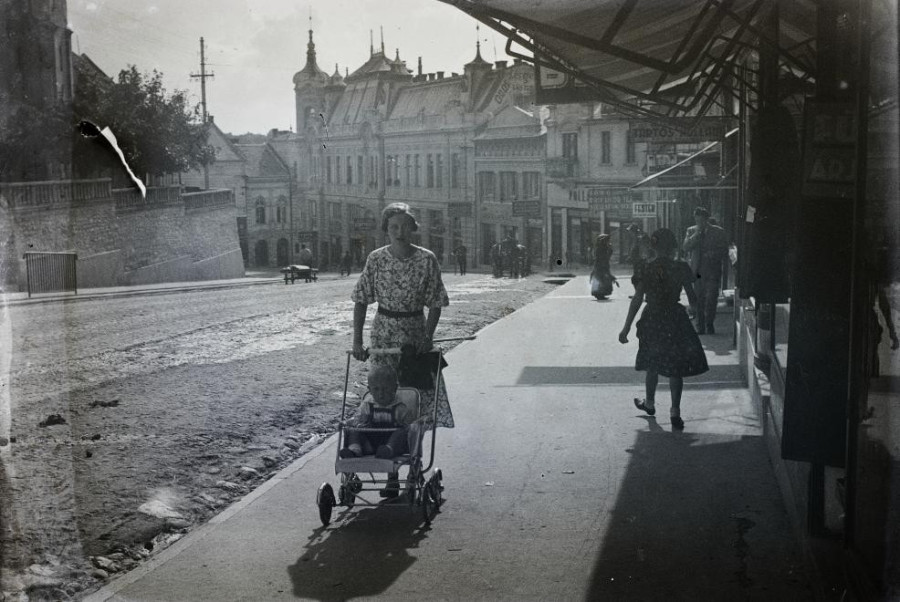 Az eredeti fotó a megjelölés szerint 1937-ben készült a mai Kossuth utcán, és Haui Balázs jóvoltából került a Fortepan archívumába.