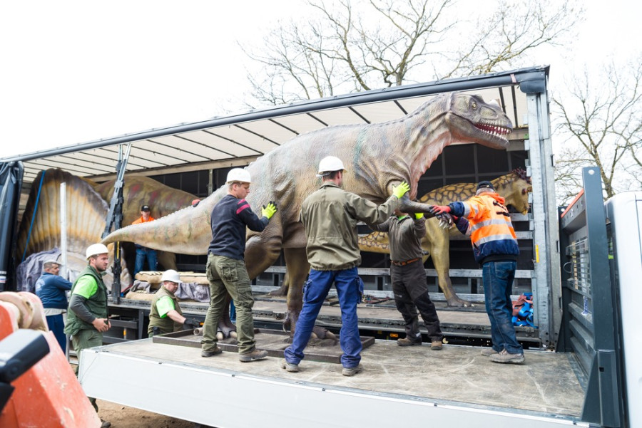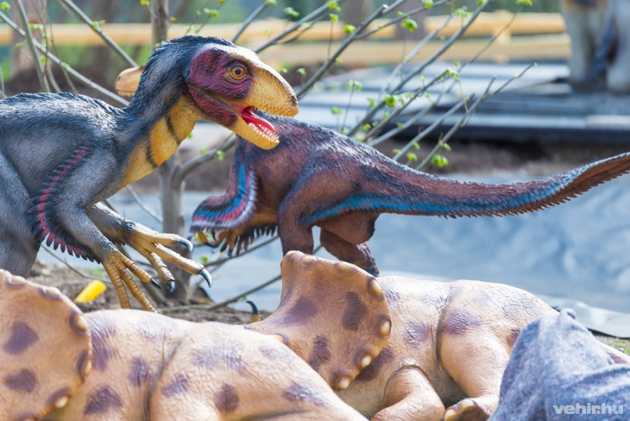 Folyik a tereprendezés, a látogatói ösvények szinte teljesen elkészültek, a kamionokról pedig épp előttünk emeltek le egy Ceratosaurust, a Velociraptorok már a helyükön - gőzerővel dolgoznak a munkások a Veszprémi Állatkertben, hogy nyár elejére minden látogató élőben is megcsodálhassa a vadaspark új attrakcióit, az életnagyságú veszprémi dinoszauruszokat.