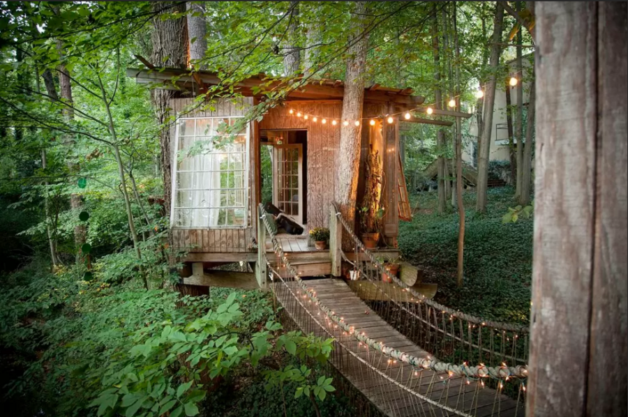 Érdekes, hogy mégsem az előbb említett helyszínek a legkapósabbak az airbnbt igénybe vevők között, hanem egy fák között megbújó házikó Atlantában. Persze nem akármilyen faházról van szó: a modern nomádok kedvencében a rusztikus vonal kifinomultsággal párosul, és pont olyan, mintha most lépett volna ki egy fantasy regényből.