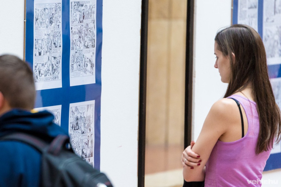 Felföldi Gábor közművelődési titkár köszöntőjében a képregényrajzoló munkásságát méltatta, akinek egyébként már több anyagából rendeztek kiállítást az egyetem falai között.