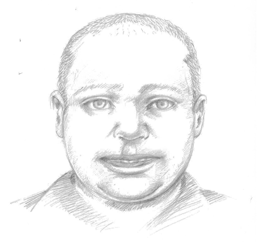 A férfi körülbelül 28-30 év körüli, 170-175 centiméter magas, kissé kövérkés, pocakos, két első metszőfoga szabálytalan, ferde állású. Feje kerek, világosbarna haja elől jól láthatóan kopaszodó kétoldalt a halántékok irányába. A bűncselekmény elkövetésekor szürke színű hosszúnadrágot, valamint szürkés színű kabátot, fekete bakancsot és fekete hátizsákot viselt.