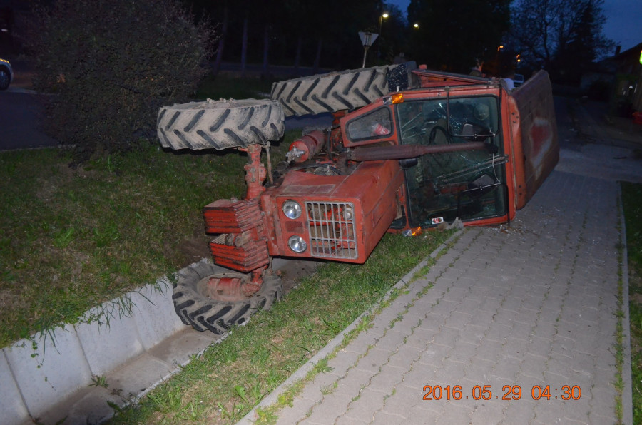 A 19 éves szentgáli férfi mezőgazdasági vontatójával vasárnap hajnalban Úrkúton a Rákóczi Ferenc utcában egy út menti, betonlapokkal kirakott árokba hajtott és felborult egy mezőgazdasági vontatóval, amelyen a sofőrön kívül még másik három szentgáli fiatalember is utazott. A balesetben mind a négy férfi megsérült. A baleset körülményeit az Ajkai Rendőrkapitányság büntetőeljárás keretében vizsgálja.