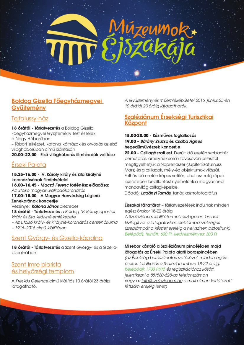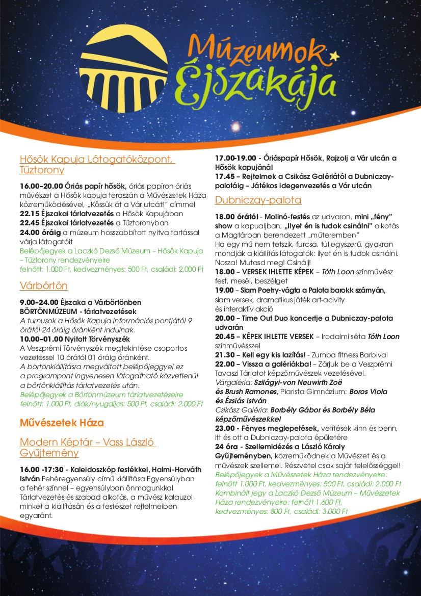 A Múzeumok Éjszakáján a felvonulás egyéb okok miatt, módosított útvonalon halad, fáklyák vételezésére pedig a Kittenberger Kálmán utcánál lesz lehetőség, ezt a múzeum munkatársai fogják koordinálni. Megértésüket köszönjük!