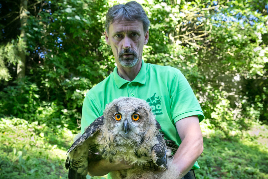 "A Veszprémi Állatkert uhu tenyészpárja évről évre szaporulattal örvendezteti meg az állatkertészeket, ami a faj természetvédelmi státuszára való tekintettel rendkívüli jelentőséggel bír. Idén tavasszal egy példány nagy fülesbagoly kelt Állatkertünkben, mely szépen cseperedik, nevelésében mindkét szülő szerepet vállal. A fiókát az Állatkert állatorvosa egyedi azonosítóval, mikrochippel látta el, és az előző évekhez hasonlóan a megfelelő életkor elérését követően repatriálásra kerül majd. Az új élőhelyének kiválasztása a természetvédelmi szempontok figyelembevételével, természetvédelmi őrök segítségével történik.