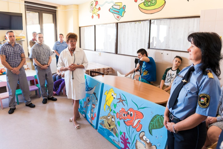 Dr. Szabó Éva főorvos asszony az adományokat megköszönve elmondta, a felajánlás különös jelentőséggel bír számukra. A vidám festményekkel bizonyosan mosolyt csalnak a rabok a kórház gyermekosztályán gyógyuló lurkók arcára, a pénzadomány pedig nagy segítséget jelent nekik, és semmiképpen sem tekinthető szerény összegnek, hiszen az éves szinten sok kicsiből összegyűjt pénzkeretből tudnak új műszereket venni a vizsgálatokhoz, illetve ezek révén tudják biztosítani a gyerekek komfortérzetét javító apróságokat is.