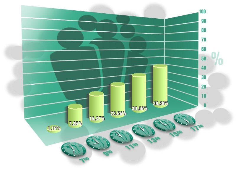 A népszavazás félidején túllépve a választópolgárok 23,56 %-a adta le szavazatát. A 2008-as népszavazáskor az egyórás adat 26,92%, 2004-ben 18,57% volt.