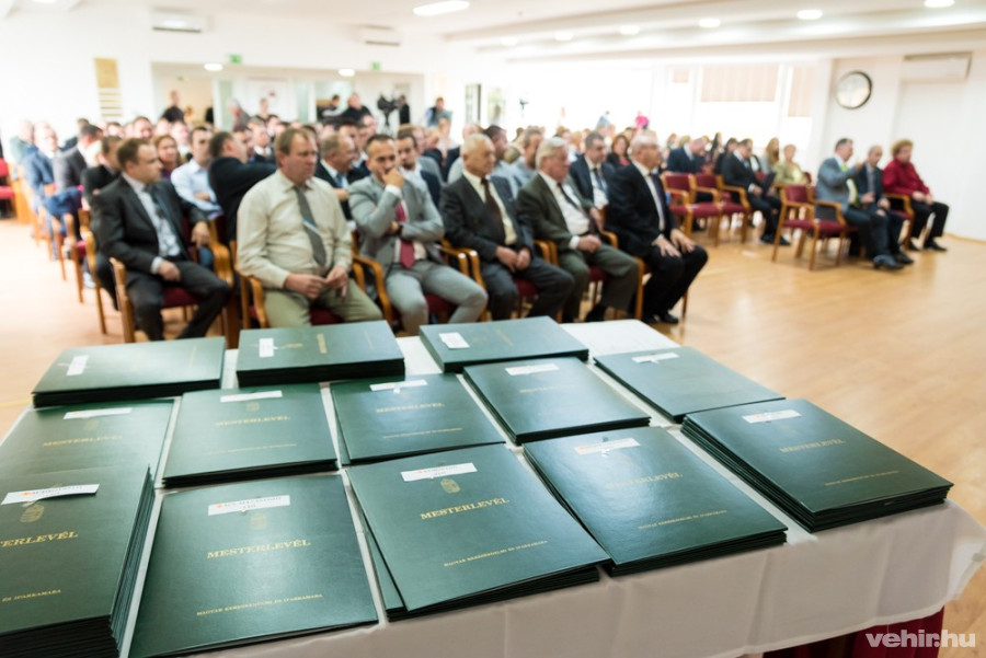 Az ünnepélyes mesterlevál-átadón a frissen avatott mesterek esküt tettek, hogy szárnyaik alá veszik a szakmát tanuló fiatalokat a gyakorlati képzőhelyeken, a legkiválóbbak pedig emlékplakettet vettek át.