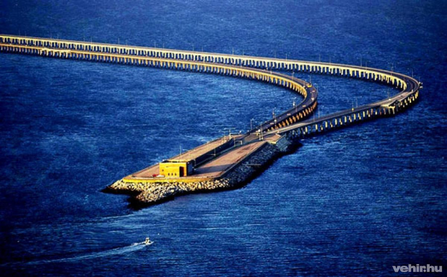 Autópálya-híd alagut-állomással, Chesapeake Bay, Norfolk USA