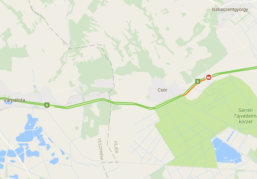 A Csórhoz közelebbi balesetben egy személyautó lehajtott az útról, majd az út mentén oldalára borult. A járműben egy ember utazott, ő könnyebben megsérült a balesetben. A székesfehérvári hivatásos tűzoltók áramtalanították, majd kerekeire állították a gépkocsit.