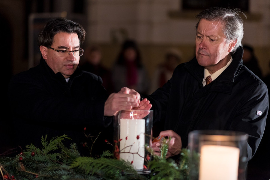 Erre a bátorságra valóban szükségünk is van ahhoz, hogy lélekben felkészülve, megfelelő tartalommal, szeretettel és odafigyeléssel nézhessünk elébe minden hívő keresztény ember legnagyobb ünnepének – mondta Némedi Lajos alpolgármester. – Ünnepeljük, és bízzunk abban, hogy mégis van lehetőség arra, hogy szeretetben, megértésben, egymás kezét fogva éljük az életünket, s adjunk hálát Szűz Máriának, amiért vállalta a szűzanyaságot – intett az alpolgármester, majd Vass Albert soraival kívánt áldott ünnepeket az egybegyűlteknek.