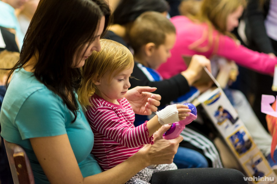 A kicsik nagy odafigyeléssel hallgatták a történeteket, de az igazi izgalmat az jelentette, amikor Ovádi Péter, a jótékonysági akció védnöke átadta az ajándékokat.