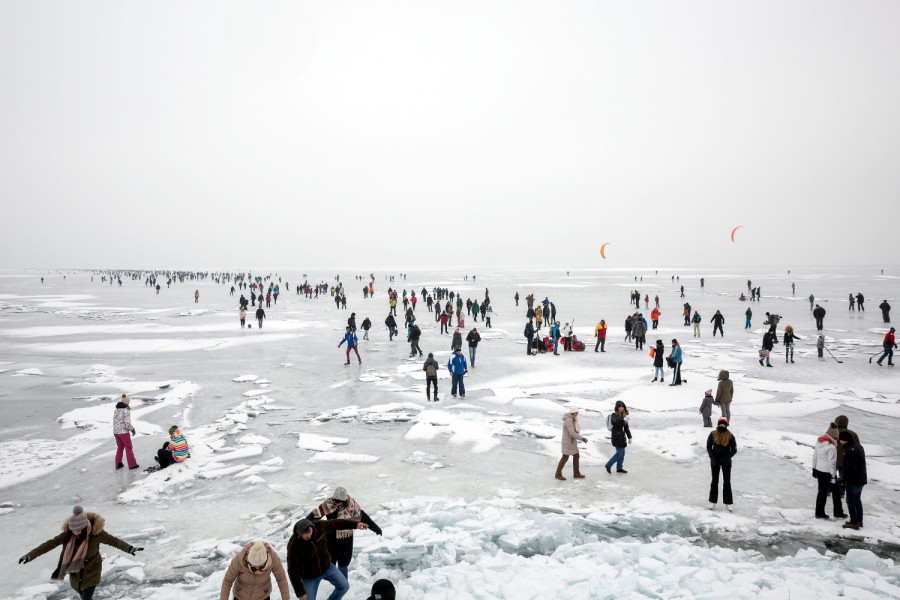 A nyári főszezont is túlszárnyaló tömeg lepte el az északi parti Badacsony és a déli parti Fonyód strandjait, az átcsúszás 5,2 kilométerre lévő két végpontját. Az átkelőkből, akik közül sokan különféle téli sporteszközökkel tették meg a távot, szinte élőlánc alakult ki a két strand között.