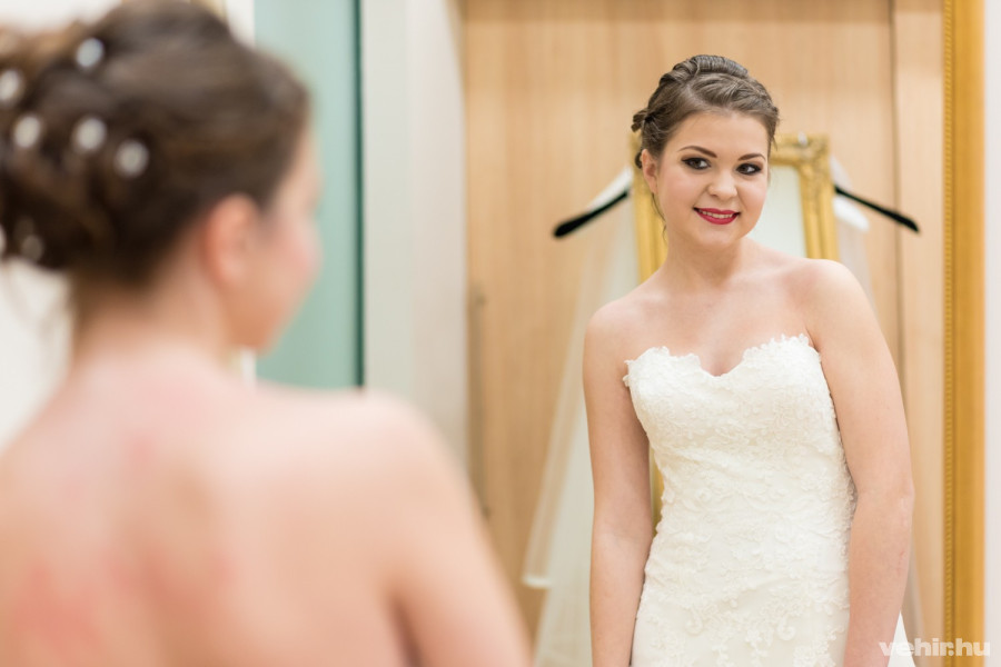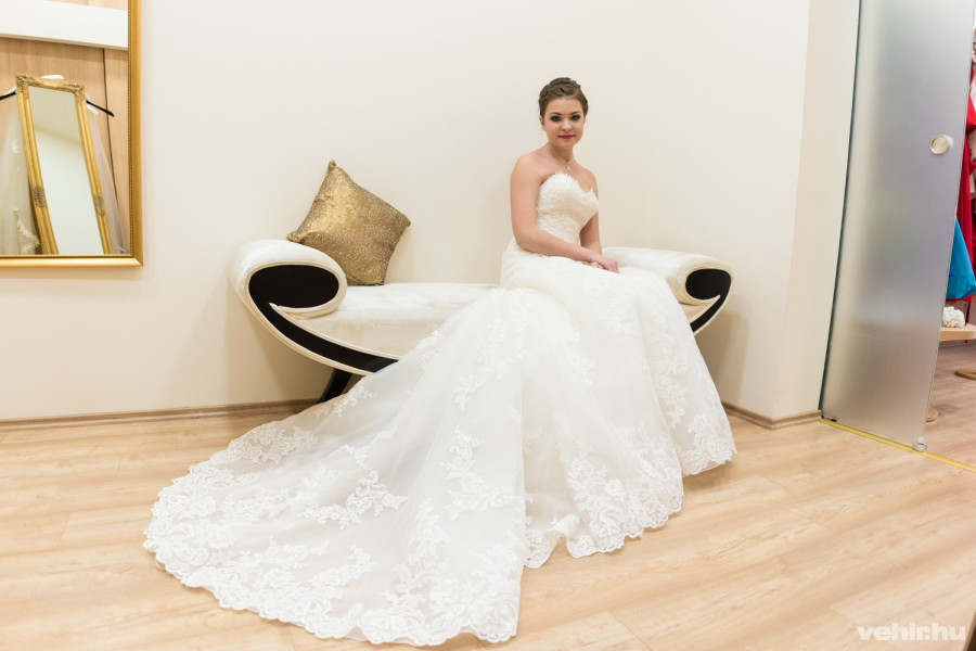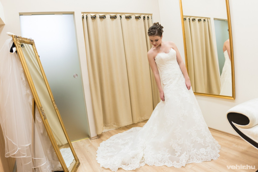 Az elől-hátul, tetőtől talpig csipkével borított ruha báját emeli a pánt nélküli, szív dekoltázsú felsőrész. Derékvonalig szűkül a ruhaköltemény, onnantól kezdve viszont kicsit lazítottak rajta a tervezők: a több réteg tüllből készült szoknya A vonalú szabást kapott. Ez a kombináció nemcsak az összhatást teszi különlegessé, de pontosan azokat a területeket emeli ki, amiket kell, míg adott esetben a pocakot vagy a csípőt elfedi. Az eredmény: hivalkodásmentes ragyogás.