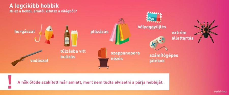 A Csajok és Pasik felmérésből az is kiderült, hogy mindkét nem a közösen végzett hobbira esküszik, ugyanakkor a nők ötöde szakított már amiatt, mert nem bírta elviselni a másik kedvenc elfoglaltságát.