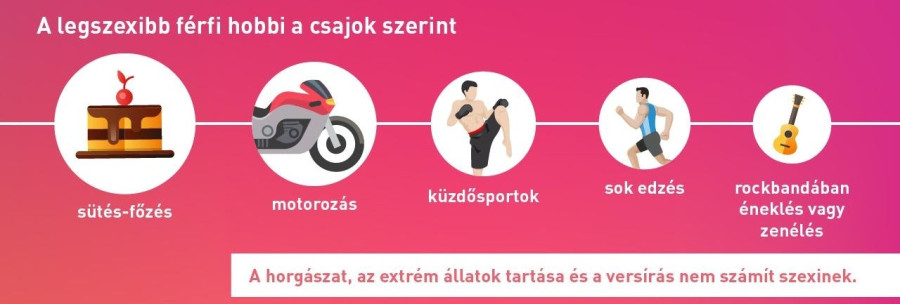 A Csajok és Pasik felmérésében résztvevő nők szerint a legszexibb férfi hobbik a sütés-főzés, a motorozás és a különböző küzdősportok, míg a túl sokat edző, a zenész vagy a verseket író pasiknak úgy tűnik, leáldozott.