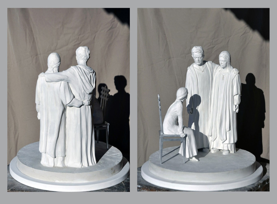 A kör talapzaton három egész alakos, ember méretű ábrázolás jelenik meg: az ülő alak Szűz Mária, a két álló alak pedig Szent Anna és Szent Joachim. A művész Piller Csaba nemcsak a hívőket kívánja megszólítani, hiszen tudatosan törekszik arra, hogy a figurák ábrázolása a mai kornak is megfeleljenek. A szobor talapzata kiemelkedne a térburkolatból, ezzel is elősegítve a történetiség kifejezését. A mű anyagát tekintve „acry stal carrara” poliészter, a szék, amelyen Szűz Mária ül saválló acél. A tervezett avatás időpontja: 2017. július 26., Szent Anna napja.