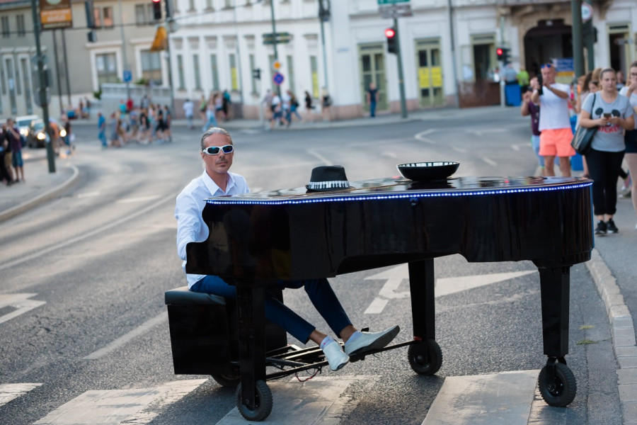 Szerettük a guruló zongorát. Először akkor láttuk, amikor vonultunk az emberekkel a Kossuth utcán. Ahogy felbukkant a tömegből, és nyilvánvalóvá vált, hogy ez egy ember irányította zongora, ami járműként funkcionál, nagyon meglepődtünk. Aztán később valahol mindig felbukkant, és vele együtt megjelent a „zongoraember” cinkos mosolya is. Azóta utána olvasva megtudtuk, hogy ez a fő állása, sorra járja a rendezvényeket, és egyébként nem tud zongorázni.