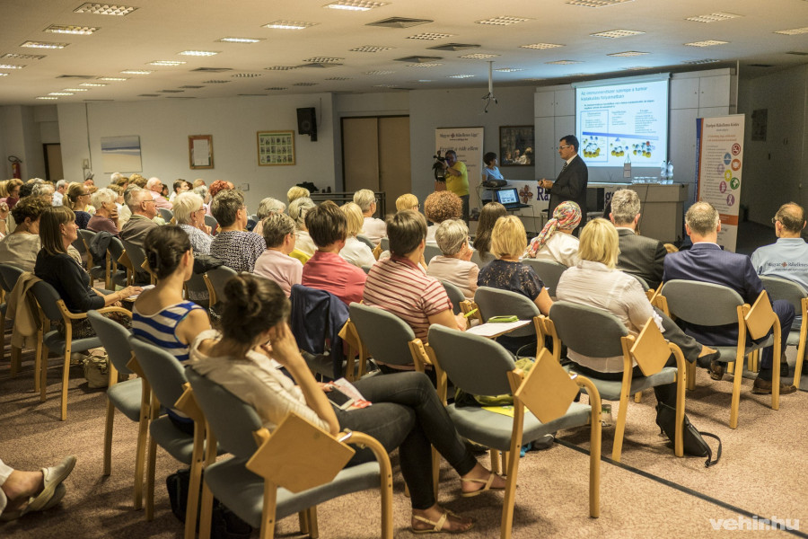 Dr. Medgyasszay Balázs, a tüdőrák kezelésének új lehetőségeiről beszélt. A Veszprém Megyei Tüdőgyógyintézet betegeinek fele küzd tüdőrákkal, amelyet aztán csak minden tizedik beteg él túl. Fontos a megelőzés és a szűrés, sajnos a szűrésre járó emberek száma csökkenőben van. Már a legmodernebb készülékek állnak rendelkezésre arra, hogy kiszűrjék a betegségeket. Mint mondta, nem tüdőszűrés történik, hanem mellkasszűrés: a vizsgálatokon keresztül nemcsak a tüdő betegségei, hanem a szívbetegségek, deformitások is kiszűrhetők. Fontos az is, hogy a betegnek elérhetővé váljanak az alternatív kezelések, a táplálékkiegészítők, de mint mondta: a betegek gyógyulása azok hozzáállásától függ, minden fejben dől el.