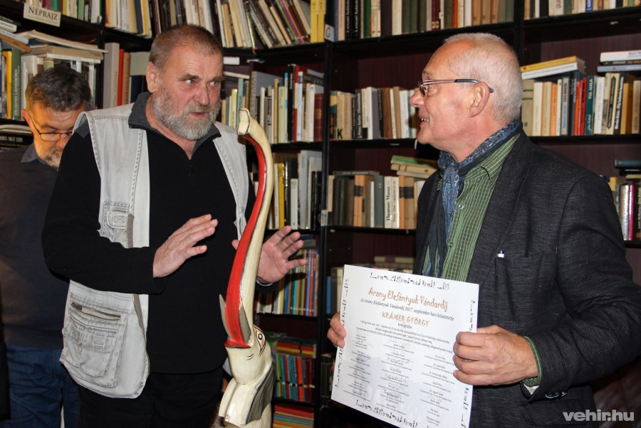 Egy kicsit születésnapi meglepetés is volt ez, hiszen a művész a héten ünnepelte születésnapját, így dupla az öröm is. Bár Krámer György korábban a Harangozó-díjat és a Megyei Príma-díjat is elnyerte, a tréfás elismerés legalább olyan értékes számára, mint a nívós kitüntetések. „A szívem csücske ez a díj, egy igazán megmosolyogtató, szeretett és nagyon veszprémi dolog. Egy igazi bohém, jó értelemben vett fésületlen banda ez a társaság, és én nagyon örülök, hogy úgy gondolták, bevesznek a köreikbe. Jó közéjük tartozni, Molnár Sándor és az Utas és Holdvilág pedig egy olyan szellemiséget képvisel, olyan igazodási pont, amely hozzám is nagyon közel áll” – nyilatkozta lapunknak, korábban azt is hozzátéve, úgy érzi, most lett igazán veszprémi, ittléte első kilenc évében ez kevésbé sikerült.