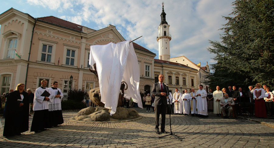 Nagy Károly kanonok úr, a Szent Mihály Bazilika plébánosa hangsúlyozta, a szobor elkészültre régóta belső, személyes ügye volt. A szobor létrejötte azt mutatja, nincs eredmény áldozat nélkül. Kitartásra, küzdelemre és áldozatvállalásra szólított fel mindennapjainkban, és annak jegyében adta át a szobrot.