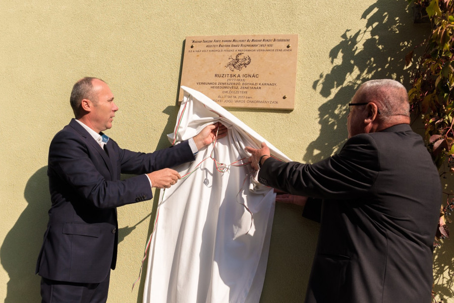 A Dózsa utca 4. szám alatti épületen elhelyezett tábláról Porga Gyula polgármester, és M. Tóth Antal, az emlékjel kezdeményezője rántotta le a leplet.
