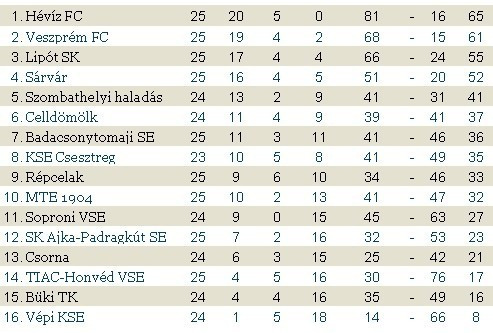 Öt fordulóval az NB III. Bakony-csoport zárása előtt négy pont a VFC hátránya a Hévizzel szemben. Focistáink ősszel remekeltek, azonban egy kétmeccses "rövidzárlatnak" köszönhetően beelőztek bennünket a tópartiak.