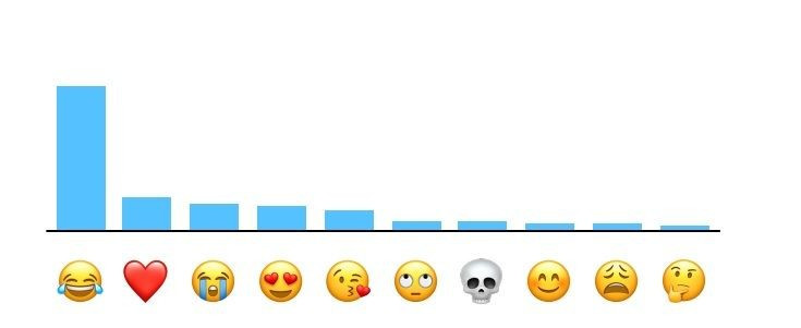 Nagyon lemaradva, ám a legjobb 9 közé kerültek között nem nagy különbséget találva, mégis a második helyen a jól ismert szívecske áll, a dobogó legalsó fokára pedig a sírós emotikon került.