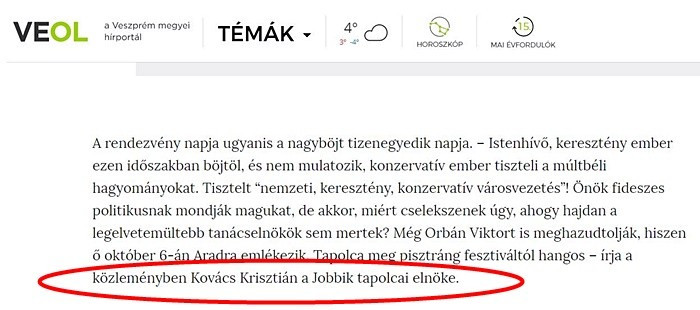 Azért mindezek ellenére sikerült írásos bizonyítékát is találnunk annak, hogy a Jobbik tapolcai alapszervezete létezik és annak elnöke, a nekünk telefonon nyilatkozó Kovács Krisztián. Egy közleményüknek, amiben a pisztráng fesztivált bírálják, véletlenül épp Kovács Krisztián elnök az aláírója.