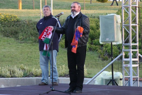 Elsőként Debreczenyi János, polgármester köszöntötte a megjelenteket, a két sikercsapat szurkolói sálját szorongatva a kezében. Ezt követően Donát Tamás színpadra szólította a Veszprém Beton KC játékosait és vezetőit, akiket a férfi csapat nevében Gulyás Péter köszöntötte, a lányoknak egy-egy szál virágot adott át. A nemes gesztust egy nagy betonos mezt viselő macival viszonozták a lányok.