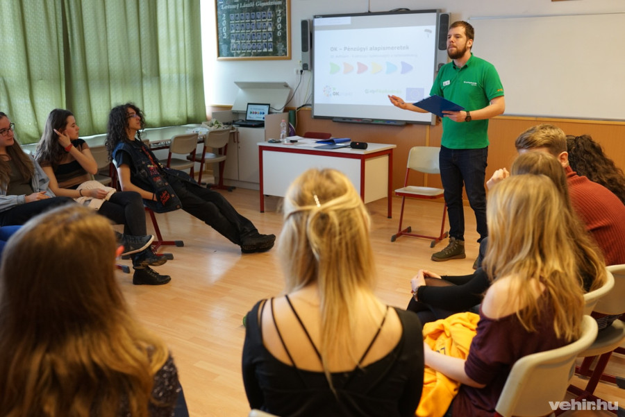 "Nyolc kollega érkezett az iskolába azzal a céllal, hogy pénzügyi tréninget tartsunk a középsikolás fiúknak és lányoknak, játékos, interaktív formában. Olyan információkat szeretnénk átadni nekik, amelyeket hasznosítani tudnak a hétköznapi életben. Nagyon kíváncsiak vagyunk arra is, hogy milyen tudásuk van a pénzügyi dolgokról"- mondta érdeklődésünkre Szabó László Ádám, az OTP Fáy András Alapítvány senior trénere.