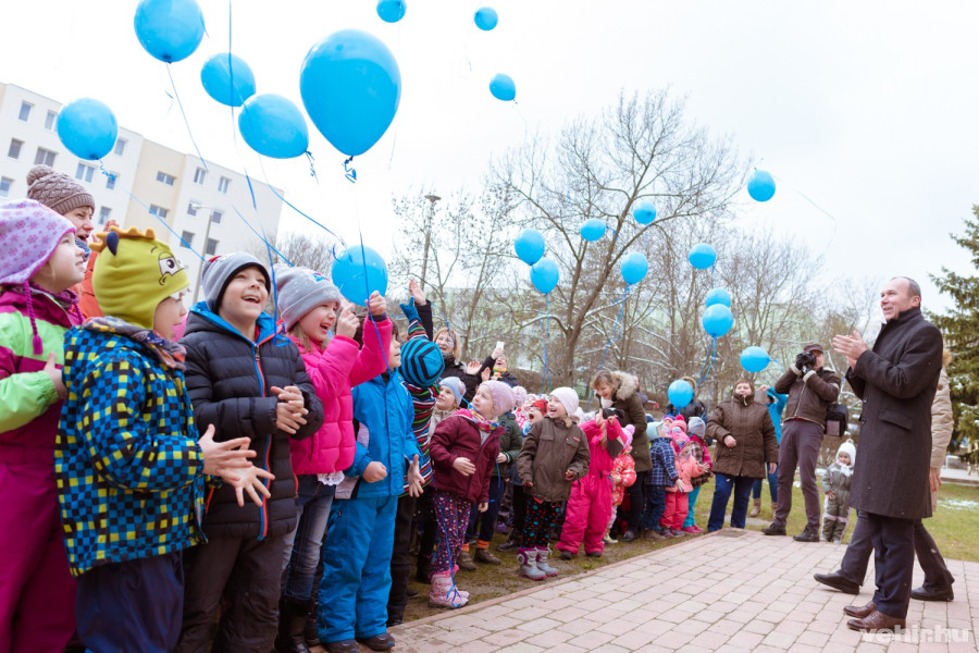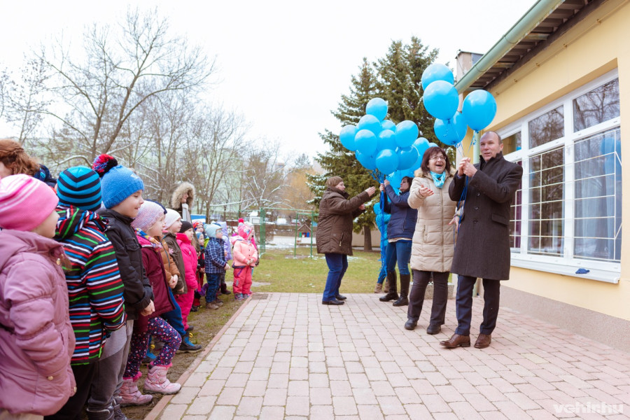 Kedden Porga Gyula, polgármester köszöntötte az óvodásokat és az intézmény dolgozóit, meglepetésként kék lufikat hozott, amit aztán a gyerekek az udvaron engedhettek el.