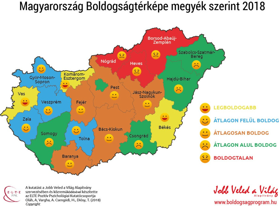 A boldogságtérkép alapján Veszprém megye az ’átlagon felül boldog hely’ jellemzést kapta.