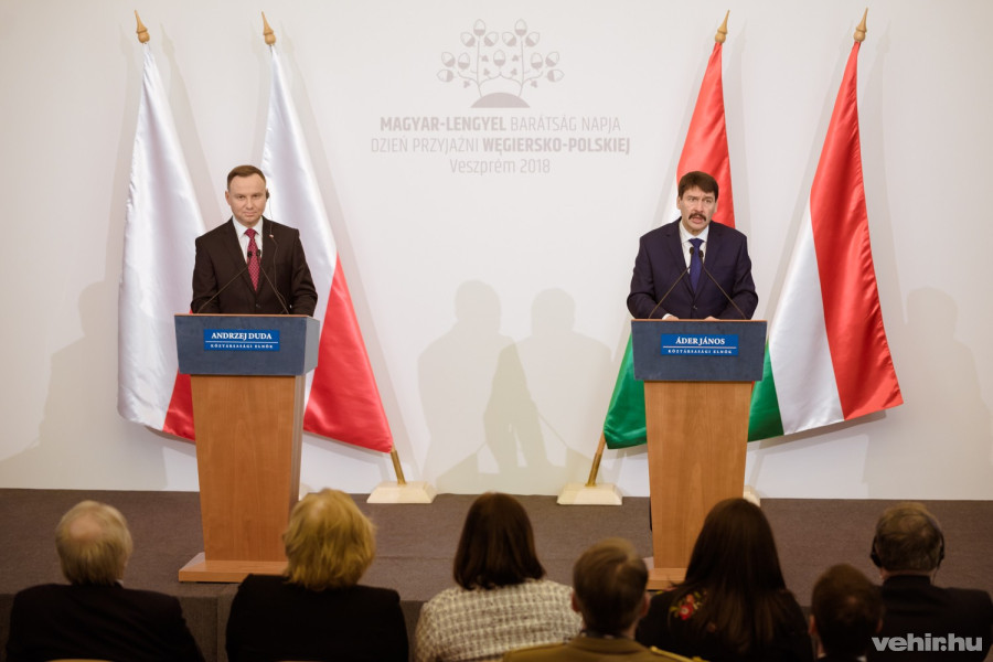 A Lengyelország és az Európai Bizottság konfliktusait érintő kérdésre vonatkozóan Áder János kijelentette: Magyarország nem fog hozzájárulni ahhoz, hogy alaptalanul büntessék Lengyelországot, Lengyelország számíthat a vétónkra minden esetben, amikor alaptalan vádakkal illetik őket.